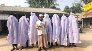 ফরিদপুরে কাফনের কাপড় পরে নির্বাচনী প্রচারণা